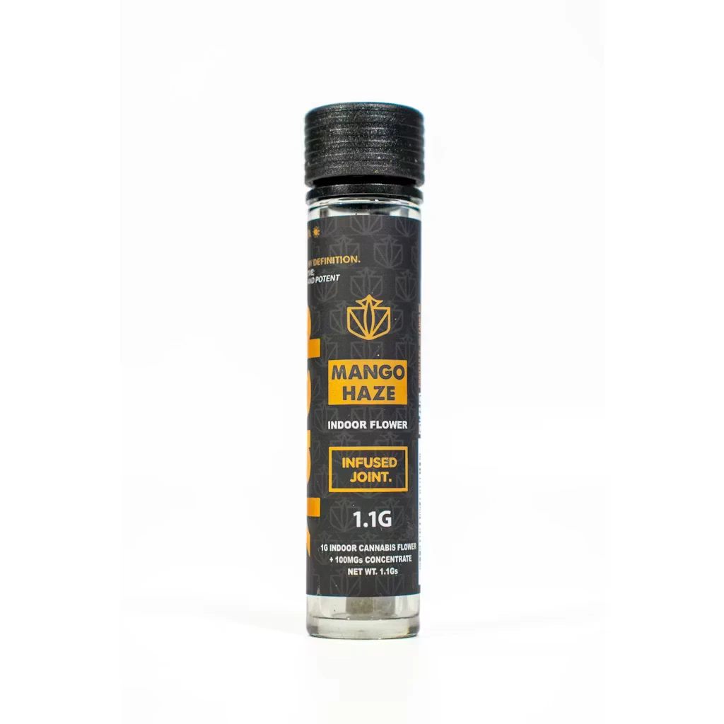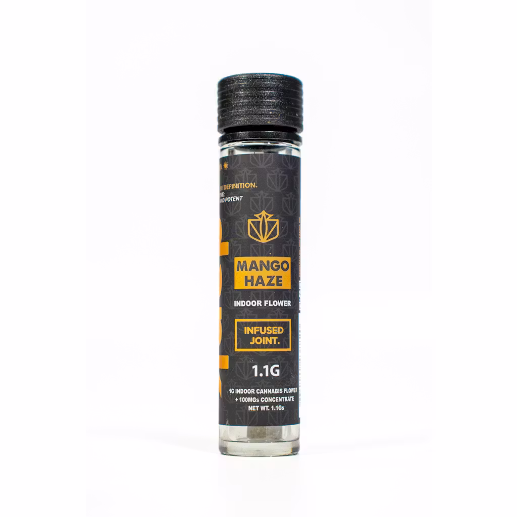 A 1.1G pre-roll joint of premium DANK Mango Haze flower, rolled in classic joint paper and infused with 100MG of concentrate.
