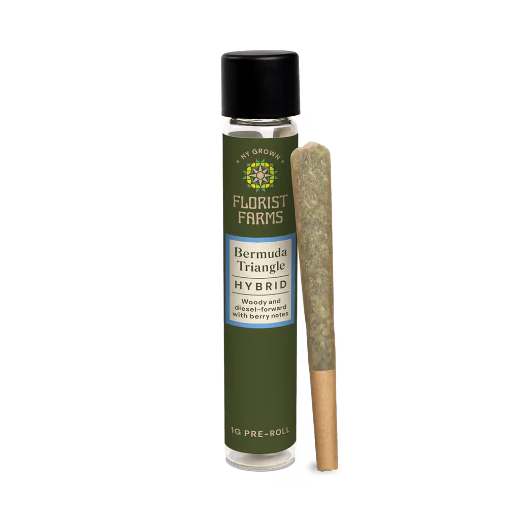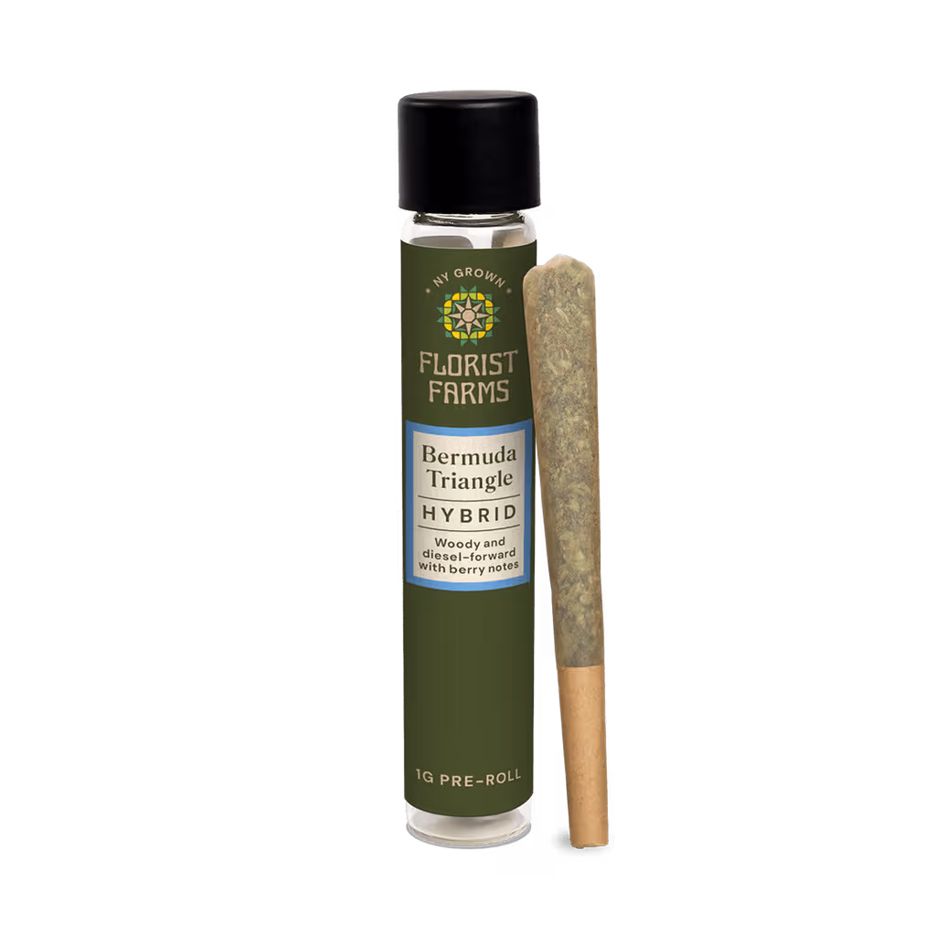 Bermuda Triangle by Florist Farms is a hybrid pre-roll that delivers a smooth, full-spectrum experience from first open to last hit. Each 1 gram single contains whole cannabis flower — never trim — ensuring premium quality in every pull. Single-sourced and pesticide-free, this pre-roll is rolled right for a clean, even burn, just how the plant intended. Expect woody, diesel-forward flavors layered with subtle berry notes, making Bermuda Triangle a standout choice among premium pre rolls in New York. Whether you're a seasoned connoisseur or a first-time consumer, this ready-to-smoke hybrid delivers quality you can feel.