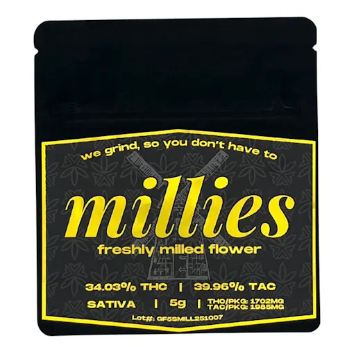 Millies are all about ease; we grind, so you don't have to! Enjoy our new 5g Sativa blend, featuring shred Gummi Bears & Bangerine flowers, grown under the sun in living soil. Super fluffy, tons of resin, you cannot go wrong with this combination. This is your go to for a quick and easy smoke - whether you pack it in a bowl or vape, or roll it up in your preferred paper or blunt. Hand harvested and triple sifted by yours truly.