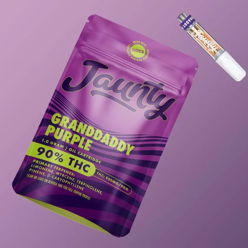 Sink into deep relaxation with the rich, soothing flavor of Granddaddy Purple (GDP) in this 1g vape cartridge by Jaunty. This classic indica strain delivers bold grape and berry notes with a smooth, full-bodied vapor that’s ideal for winding down, relieving stress, and promoting restful sleep.