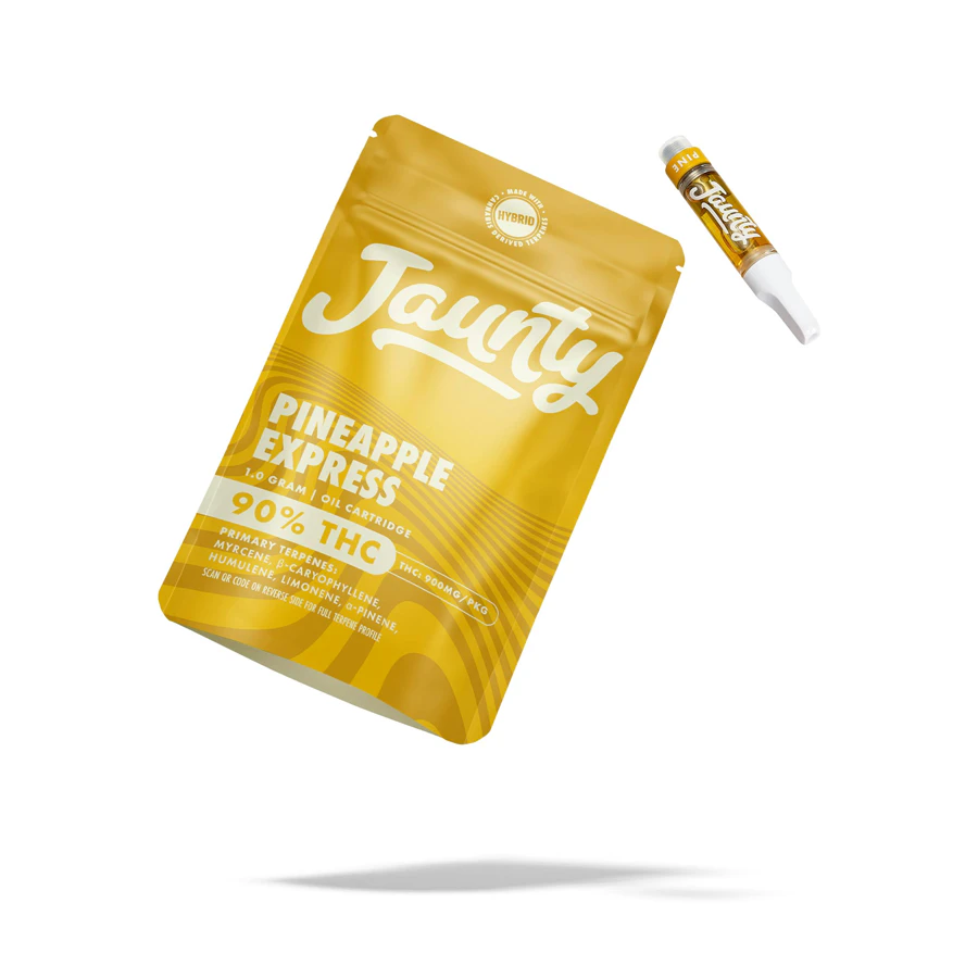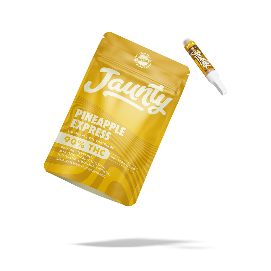Jaunty’s classic 510-thread vape cartridges combine proprietary blends of cannabis-derived terpenes with CO2-extracted cannabis oil, delivering true-to-strain flavors and effects-based profiles. Pineapple Express is a very popular hybrid that packs a punch to your pallet with bright citrus notes, pineapple and pine. Each hit delivers a delicious dose of euphoria and laser-focus effects, perfect for a midday pick-me-up. *2023 Excelsior Cup Winner!